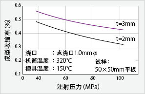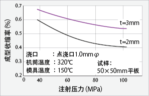 图3 FORTRON®的成型收缩率(点浇口) |