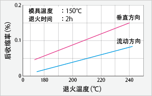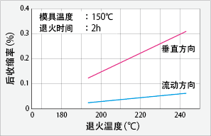 退火有2种含义:①去除应变和②保持尺寸稳定。如果要①去除应变,可在玻璃转化温度略上处(100~120℃)进行1小时左右的退火。如果要②保持尺寸稳定,则需要适当提高温度。为了不发生尺寸变化,必须通过退火来彻底结束后收缩。例如,如果产品的最高使用温度为160℃,则应在比其高20℃的180℃下进行退火。